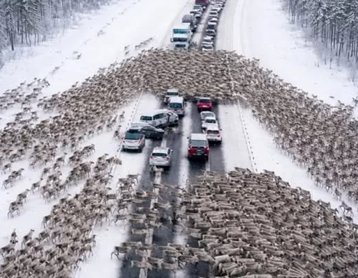 A Holiday Highway Surprise: Reindeer Bring Traffic to a Standstill