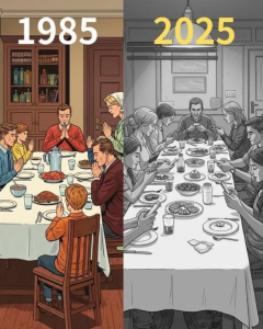 In 1985, the prayer may have masked silence. The clasped hands may have hidden tension. The warmth may have excluded those who didn’t fit the mold. Family dinners were not always safe havens. Sometimes they were battlegrounds dressed in linen.