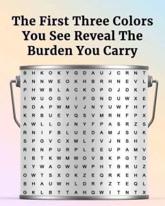 The viral image says, “The first three colors you see reveal the burden you carry.” While it’s not scientific, it resonates because colors are emotional language. The hues you notice first often align with your current state of mind — what your subconscious is trying to express.