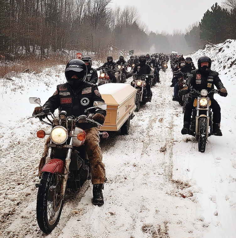 The convoy rolled out just before dawn. The temperature was 15°F and dropping. Within the first hour, the snow turned into a full blizzard, visibility shrinking to only a few feet. Still, the bikers pressed on. With their headlights cutting through the whiteout, they formed a protective formation around the van, shielding it from icy winds and trucks barreling down the interstate.