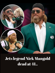 Nick Mangold, the legendary center who anchored the New York Jets’ offensive line for more than a decade, has passed away at the age of forty-one. His death has sent shockwaves through the sports world, leaving fans, teammates, and the entire NFL community mourning the loss of a man who was not only a dominant athlete but also a respected leader, devoted husband, and loving father.