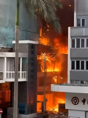 Videos circulating online show firefighters battling the blaze amid falling debris, while thick smoke blankets the skyline. Several clips captured the moment the flames appeared to spread upward through scaffolding attached to the building, possibly fueling the rapid escalation.