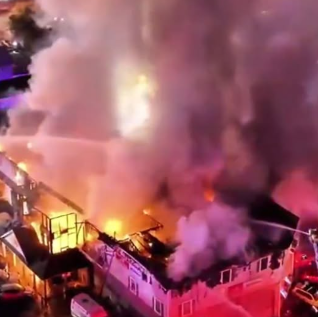 The fire, which erupted around 9:30 p.m., spread with terrifying speed through several connected buildings, consuming businesses, vehicles, and homes in a matter of minutes. As fire crews battled the inferno, the city’s skyline glowed orange — a grim beacon seen for miles in every direction.