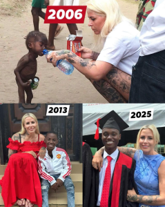 That small boy—once left to die on the dusty streets of Nigeria—would go on to defy all odds. Nineteen years later, in 2025, that same child stood proudly in a graduation gown, smiling alongside the woman who saved his life. Their journey together is nothing short of miraculous—a story of resilience, transformation, and the triumph of humanity over despair.