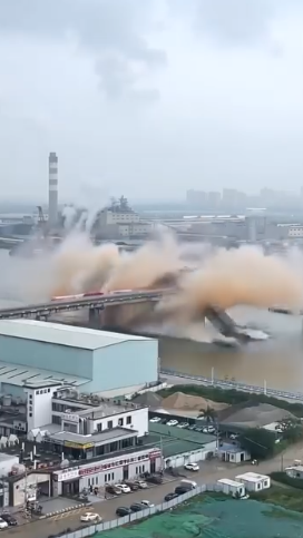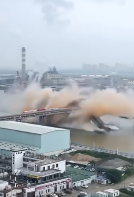 Moments from Disaster: Tanker Caught Under a Crumbling Bridge