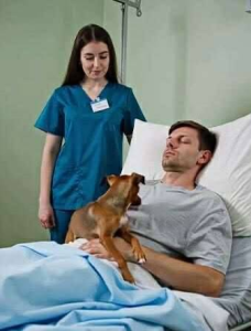 When Daniel didn’t move, Milo let out a soft whine. The room smelled strange now—faint, but growing. A thin whisper of something metallic and unnatural drifted under the bedroom door. Milo’s instincts sharpened. He pushed harder at Daniel’s shoulder, pawing with urgency until his master groaned and blinked awake.