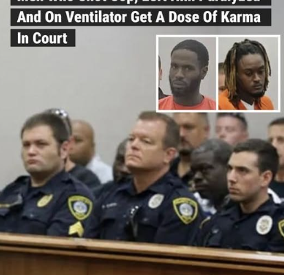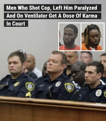 In a courtroom packed so tightly that even the hallways were lined with anxious onlookers, silence fell as the judge entered—carrying with him the weight of a case that had gripped the entire community for more than a year. The case was brutal, heartbreaking, and unforgettable: two men responsible for shooting a police officer during a routine traffic stop, leaving him paralyzed from the shoulders down and dependent on a ventilator to breathe. Now, the moment everyone had been waiting for had finally arrived.