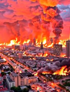 By 4:20 p.m., a third building had been compromised—a small shipping office made of tin and timber. Flames licked up its side like hungry fingers before swallowing it completely. The sky turned a deep, swirling red as ash drifted across the harbor. The air tasted metallic, thick, and suffocating.