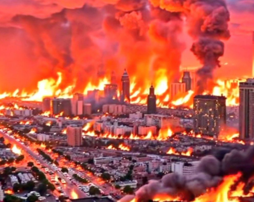 Still, firefighters continued battling hot spots, determined to prevent another flare-up. Helicopter footage showed the district covered in a haze so thick it blurred the outlines of buildings. Streets were flooded with water, reflecting the fire’s glow like broken mirrors.