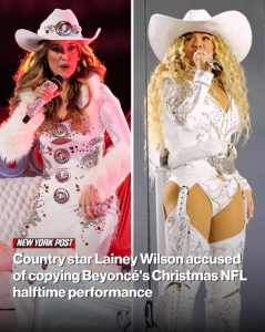 Shortly after clips and images of the performance were shared online, fans and social media users began accusing Wilson of “copying” Beyoncé’s 2024 NFL Christmas halftime show concept, pointing specifically to visual parallels like all-white costuming and a dramatic holiday entrance. AOL
