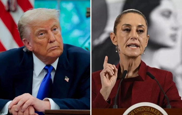 On the right, the Mexican president stands upright, finger raised not in anger, but in emphasis. Her body language says: listen to me. She leads with words, with tone, with persuasion. Where one projects dominance through presence, the other projects authority through conviction.