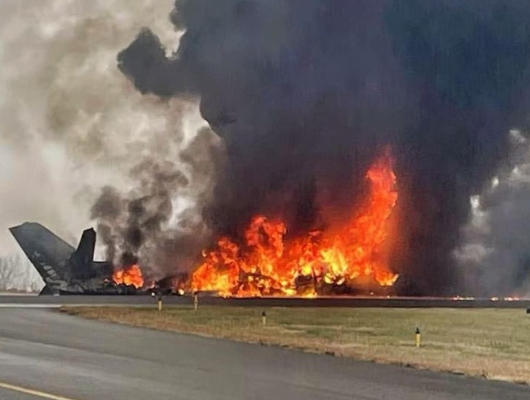 The crash created an extensive fire and debris field, prompting a major emergency response from local authorities, firefighters, and medical teams.
