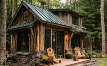 Nestled deep within a cathedral of towering pines, where the air hums with birdsong and the scent of moss and cedar, sits a cabin-style tiny home that feels like it …
